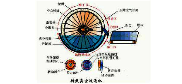 ►真空过滤机主要有外滤面转鼓,内滤面转鼓,圆盘等真空过滤机。真空过滤机过滤时,转鼓一部分浸在滤浆中,由原动机通过减速装置带动旋转。
